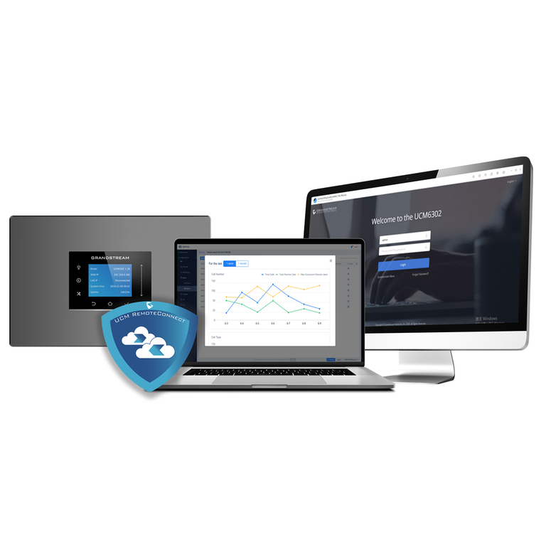 UCM RemoteConnect, kuruluşların uzaktaki çalışanlar ve cihazlar için güvenli, yönetimi kolay bir iletişim ve işbirliği çözümü oluşturmasına olanak tanır. Uzak kullanıcılar tarafından güvenli bağlantılar sağlamak için her zaman açık, otomatik NAT güvenlik duvarı geçişi sağlayan UCM6300 serisi için eşlik eden bir bulut hizmeti sunar.